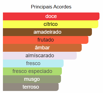Topo: Abacaxi, Limão, Bergamota, Caramelo, Pimenta Rosa, Pera, Pimenta Preta