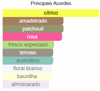 Fundo: Patchouli, Baunilha, Almíscar, Vetiver, Fava Tonka